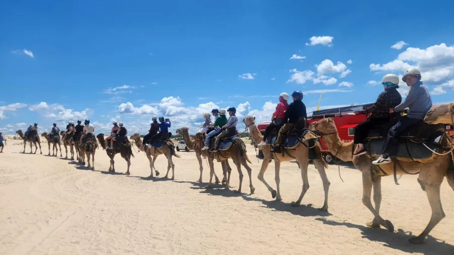 Trải nghiệm cưỡi lạc đà độc đáo ngay trên bãi cát Anna Bay.